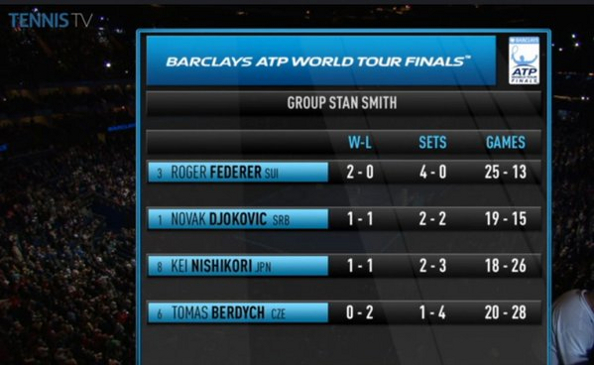 Сърбинът и швейцарецът спечелиха убедително първите си срещи в групата. Джокович разби японеца Кей Нишикори с 6:1, 6:1, а Федерер се справи с чеха Томаш Бердих - 6:4, 6:2. По-рано днес, в мач от тази група, Нишикори срази Бердих със 7:5, 3:6, 6:3.