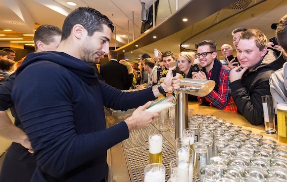 За поредна година част от футболистите на Борусия (Дортмунд) застанаха зад бара и за кратко се превърнаха в бармани. Това се случи по време на среща с привържениците на клуба. И тъй като "жълто-черните" има за спонсор марка бира, те използваха случая да й направят реклама. Халбите на привържениците пълнеха капитанът Матс Хумелс, Роман Вайденфелер, Хенрих Мхитарян, Свен Бендер, Пиер-Емерик Обамеянг и др.