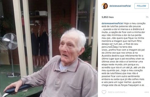 Дядото на Кристиано Роналдо е починал днес. Това съобщи майката на суперзвездата Долорес Авейро в своя профил в Instagram. "Сърцето ми скърби", пише Долорес под снимката на своя баща. Прародителят на Кристиано от години живееше в Австралия и отдалеч се радваше на успехите на своя внук.