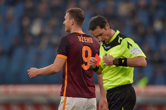 Наказание, но за 2 срещи, отнесе и босненският нападател На Рома Един Джеко. Той получи червен картон при победата на "вълците" в Рим срещу Дженоа с 2:0, след като напсува рефера Андреа Джервасони четвърт час преди края.