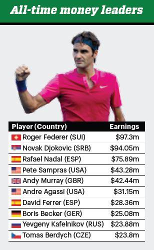 Трети в класацията е испанската суперзвезда Рафаел Надал с близо 76 милиона. За сравнение последният тенисист при мъжете, успял да направи календарния "Голям шлем" - Род Лейвър, приключва кариерата си с 1,5 млн. долара, което все пак си е крупна сума за края на 60-те години на миналия век. Друга легенда - Джон Макенроу, завършва кариерата си с 12,5 милиона, а Пийт Сампрас - с 43,28 млн. долара. В наши дни ситуацията е съвсем различна. Любопитно за отбелязване е, че в Топ 10 на тази класация намират място тенисисти като Давид Ферер и Томаш Бердих, които дори нямат титла от "Големия шлем".