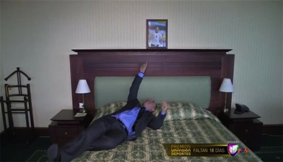 Над леглото се вижда снимка на Стоичков - ако някой има нужда от мотивация.