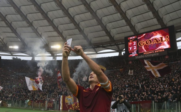 Фантастично дерби изиграха отборите на Рома и Лацио пред около 60 000 зрители на "Олимпико" от 18-ия кръг на Серия "А". Двата тима завършиха 2:2, след като си разделиха по едно полувреме, но над всички бе Франческо Тоти, който върна пасив от два гола след почивката и записа името си за пореден път в историята. 38-годишната легенда отбеляза своя 10-и и 11-и гол във вратата на "орлите" в 48-ата и 64-ата минути и вече е едноличен голмайстор номер едно в дербито за "вълците". Градският сблъсък бе негов 40-и в кариерата, което също е рекорд. Десетката на Рома дори си позволи да си направи селфи пред "Курва Суд" след изравнителното попадение. Интересен факт е, че когато Тоти бележи във вратата на Лацио, "вълците" никога не са губили.
