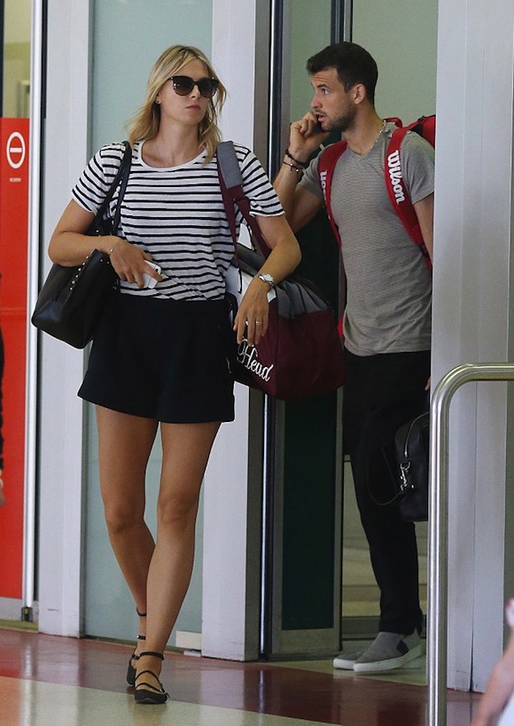 Григор Димитров и Мария Шарапова събраха погледите на летището в Мелбърн, след като пристигнаха заедно в града заради предстоящото си участие в първия за годината турнир от Големия шлем - Откритото първенство на Австралия (19 януари - 1 февруари). Свежа след новогодишните празници и шампионското начало на сезона, руската тенисистка слезе от самолета, облечена в моряшки стил. Късите панталонки на Маша накараха останалите пасажери да въздишат по дългите й крака, а Гришо бе заложил на небрежно спортно облекло. И двамата бяха нарамили сакове с екипировката си, а заедно с тях в Мелбърн пристигна и майката на Шарапова.
