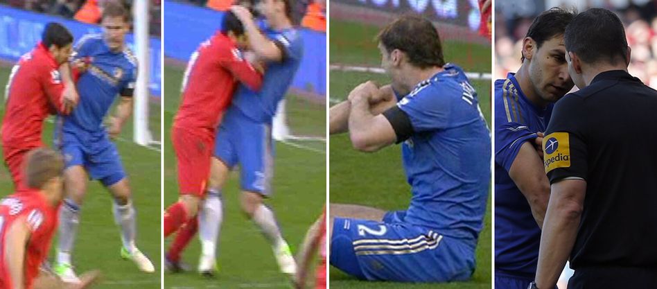 Уругуаецът първо играе с ръка и от дузпата гостите повеждат с 1:2, което го изнервя и пред другата врата забива зъбите си в ръката на Бранислав Иванович. Съдията Кевин Френд разговаря с двамата и дори изследва белезите по защитника, ала наказание не следва. То идва по-късно, когато Суарес е лишен от състезателни права за 10 мача. Той иска прошка от Иванович, признавайки се за виновен в “неизвинимо поведение”. “Наистина много съжалявам. Надявам се, че всички хора, които съм обидил, ще ми простят”, написа той в изявление.