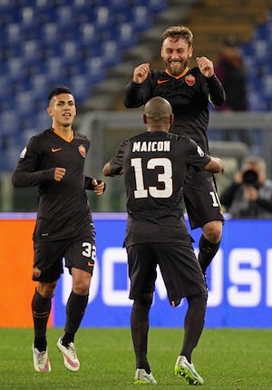 Рома се класира за четвъртфиналите в турнира за Купата на Италия след измъчена победа над Емполи с 2:1. Двубоят на "Олимпико" беше решен след продължения, а успеха на "вълците" осигури Даниеле Де Роси с точно изпълена дузпа в 114-ата минута. Преди това Хуан Мануел Итурбе откри за домакините още в 5-ата минута, а в 80-ата Симоне Верди успя да изравни. Същият футболист имаше шанс да докара двубоя до дузпи, но в последните секунди на второто продължение негов удар беше спасен от стража на Рома Лукаш Скорупски.