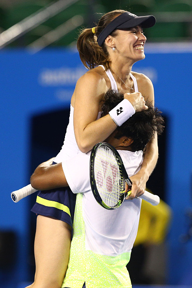 Хингис, която има три титли на сингъл, четири на женски двойки и две на смесени в Мелбърн, се завърна на корта през 2013 година, но заигра с Паеш за първи път едва на Откритото първенство на Австралия. Това не е случайно, защото индиецът е специалист на смесени двойки и има три титли в Австралия. 34-годишната Хингис започна да играе на Откритото първенство на Австралия за първи път през 1995 година, печелейки титлите през 1997, 1998 и 1999. След мача тя каза, че е доволна от партньорството си с Паеш.