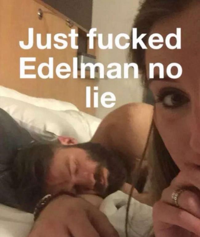В нощта след победата на неговия тим в битката за титлата в НФЛ Джулиан Еделман потърсил в приложението за запознанства Tinder жена за една нощ и бързо бил свързан с красивата Сабрина Д. Веднага след секса между двамата обаче 28-годишната барманка от Масачузетс се похвали в социалните мрежи за преживяването. Тя пусна в профилите си снимка от леглото със спящия до нея Еделман и написа: "Току-що чуках Еделман, няма лъжа".