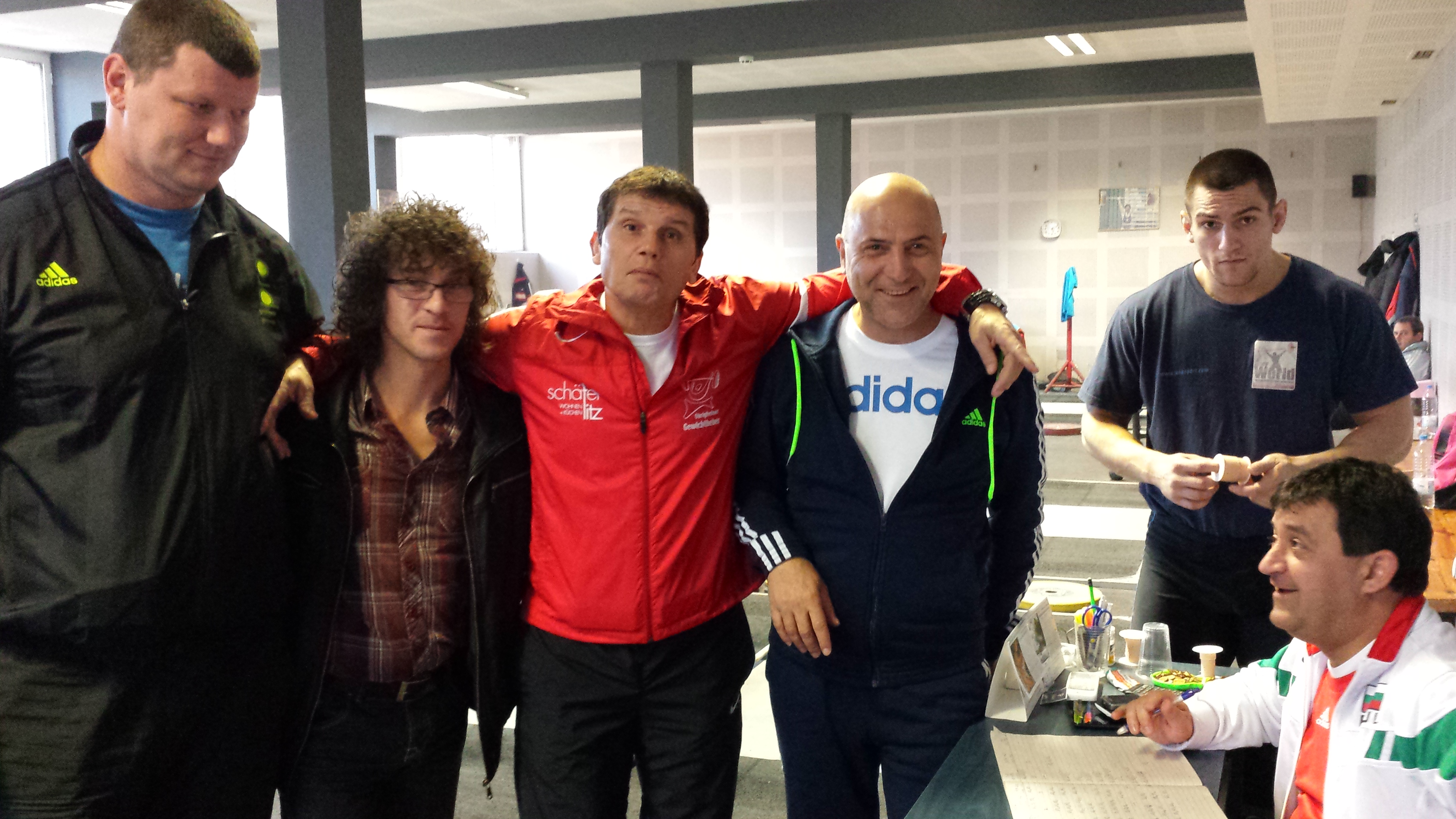 Компанията допъли Румен Теодосиев, някогашният еврошампион бе дошъл в залата, за да уточни поредното пътуване на Иван Марков за състезания в Германия. В събота предстои последният редовен кръг от шампионата на Бундеслигата, който ще определи тимовете полуфиналисти. Поради дългата си кариера и много контакти в Германия и Франция, в момента Теодосиев помага при участието на нашите тежкоатлети като представители на клубни отбори в Западна Европа. В Дианабад националните отбори мъже и жени продължават подготовка за Европейското първенство, което е от 9 до 18 април в столицата на Грузия, съобщава официалният сайт на Българска федерация щанги wfbulgaria.com.