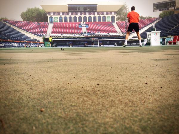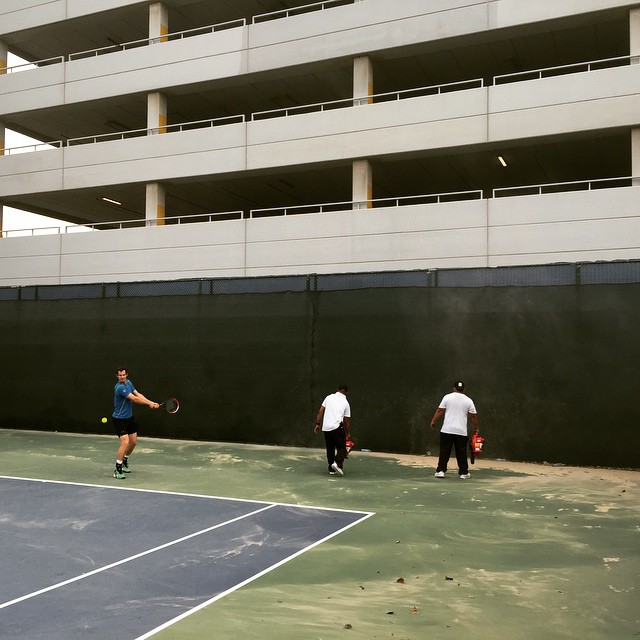 Силният вятър и носещите се из въздуха прашинки и листа нарушиха за кратко и тренировъчния процес на Анди Мъри. С помощта на машини обаче организаторите се постараха да изчистят пясъка от корта.