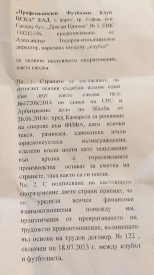 ЦСКА и Джаксън Менди се договориха да спрат всички дела помежду им. Това стана с подписано споразумение между двете страни. Член 1 гласи следното: "Страните се съгласяват да оттеглят всички съдебни искове един към друг".