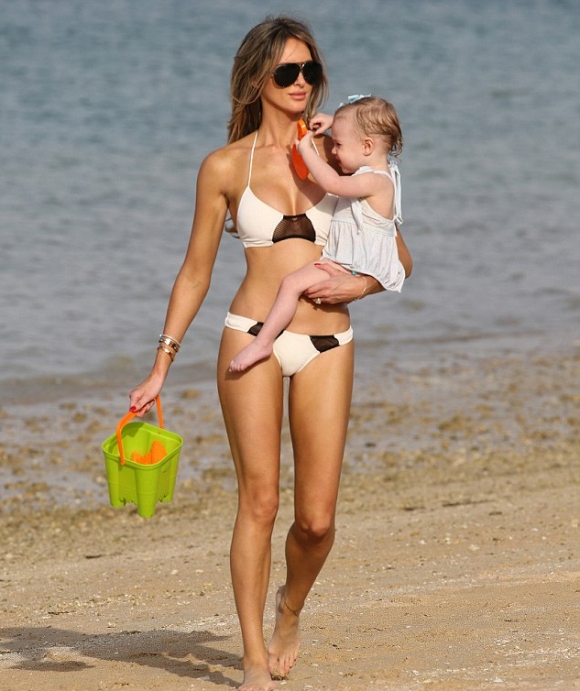 Облечена с оскъден бежов бански и с прозираща част на гърдите й, тя пръскаше сексапил в големи дози за радост на мъжката половина от плажуващите. Папараците пък уловиха Красивата Джорджина в страхотно настроение, докато тя си играеше със своята 20-месечна щерка Невае.