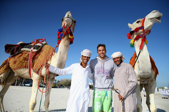 Суперзвездата на южноафриканското плуване Чад льо Кло язди камила за първи път в живота си. 22-годишният талант, който победи Майкъл Фелпс на 200 мегтра бътерфлай на Олимпийските игри в Лондон през 2012 година, осъществи това свое желание по време на плувния фестивал в Абу Даби, който продължава и днес. Носителят на 4 златни медала от Световното първенство по плуавне на малък басейн в Доха през миналата година се прекръсти преди да се качи на камилата.