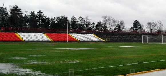 В следобедните часове теренът на градския стадион бе прорязан от 31 локви, някои от които растат видимо и са на път да се слеят. Най-трагично е положението пред футболните врати, където отдавна няма трева, а сега има само кал. Труднозабелязващите се при сухо време вдлъбнатини в терена сега са безпощадно онагледени от дъжда.