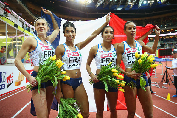 В същата дисциплина при жените квартетът на Франция в състав Флориа Гей, Елеа Мириама Диара, Агнес Рааролай и Мари Гайо стигна до златото в оспорвания финал с време от 3:31.61 минути. На второ място само на 18 стотни от секундата остана щафетата на Великобритания, а трети на 29 стотни завършиха полякините.