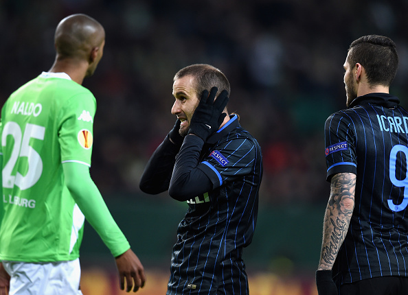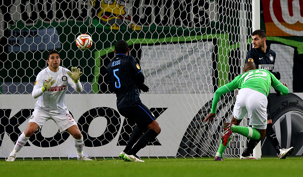 Гостите започнаха по-добре срещата на "Фолксваген Арена" и Родриго Паласио вкара третия си гол в турнира още в шестата минута, когато бе изведен срещу Диего Беналио от Мауро Икарди. Миланският гранд пропусна да удвои чрез Ернанес, но след това домакините взеха инициативата. Андре Шюрле, Даниел Кaлигиури пропуснаха, а Карисо с отлично спасяване изби в корнер. Именно след изпълнението на този ъглов удар Налдо бе оставен сам и с глава разстреля аржентинския вратар за 1:1. Попадението бе първо за защитника в надпреварата от девет срещи този сезон. Португалецът Виейриня бе близо до пълен обрат, но Карисо отново спаси.