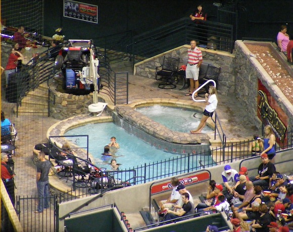 Както знаете, много от големите стадиони по света предлагат ВИП апартаменти, от които богати фенове могат да гледат мача в удобна и луксозна обстановка. На бейзболния стадион Chase Field във Финикс, Аризона, има не просто ВИП апартамент, а басейн с джакузи на самия стадион, който се дава под наем. Апартаментът към него побира 35 гости и по данни от 2011 година наемът е 3 500 долара на вечер.