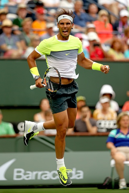 Рафаел Надал също преследва своя четвърти трофей от Индиън Уелс. Испанецът се класира за 9-и път на 1/4-финалите на надпреварата след убедителна победа с 6:2, 6:4 над Жил Симон. Световният номер три сервира за спечелването на мача при 5:2 във втория сет, но французинът успя да върне единия пробив и да удължи с още малко престоя си на корта. Левичарят от Манакор беше безгрешен в последвалото си подаване и сложи точка на мача след 1 час и 18 минути игра.
