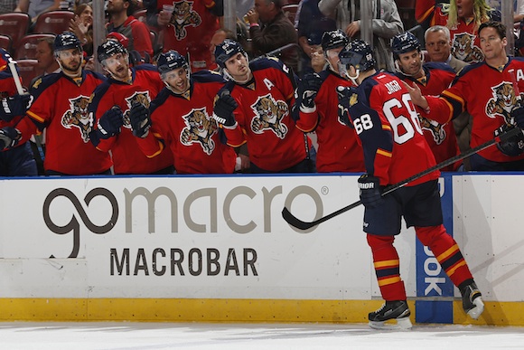 Яромир Ягър се разписа при победата на Флорида с 3:1 над гостуващия Детройт и със 718-ото си попадение измести Фил Еспозито от петото място във вечната ранглиста на най-добрите реализатори в Националната хокейна лига.