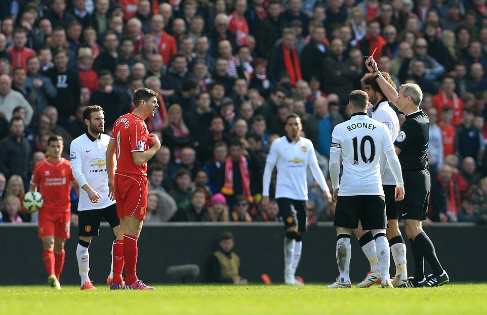 Миналогодишното подхлъзване срещу Челси бе злощастно. Тази си проява тук той призна като близка до лудостта. Дали тя струва на Ливърпул мача, или поне точка? Възможно е. Имайки предвид колко близко резултатът държа двата отбора при 10 срещу 11, кой знае дали Юнайтед би удържал срещу пълен състав на съперника? Сигурното е, че излизането на Джерард остави Ливърпул пред изкачването на планина, станала двойно по-висока след втория гол на Мата – един от головете на сезона.