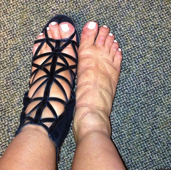 Краката на бременните понякога се подуват ужасно. Ким продължи да носи дизайнерски обувки и естествено документира резултата.