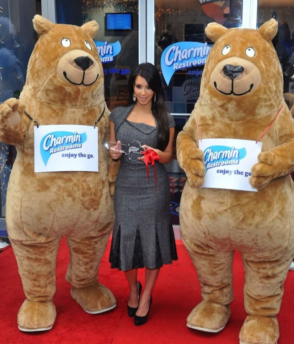 Ким приема всякакви хонорари, включително за поява за откриване на обществена тоалетна в Ню Йорк. Да, прочетохте правилно – тоалетна. Тя трябваше да се усмихва нервно, позирайки с две мечета, държащи опаковки тоалетна хартия.