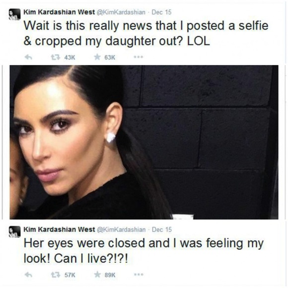Тя възмути доста американци, когато пусна в Twitter своя снимка, на която беше изрязала дъщеря си, защото очите й били затворени и разваляла снимката.