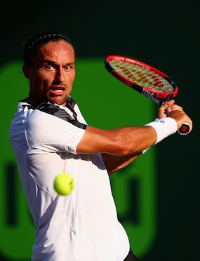 Следващото препятствие пред сърбина по пътя към петата му титла в Маями е световният номер 6 Давид Ферер. В осминафиналната фаза опитният испанец преодоля съпротивата на Жил Симон от Франция със 7:6 (5), 6:0.