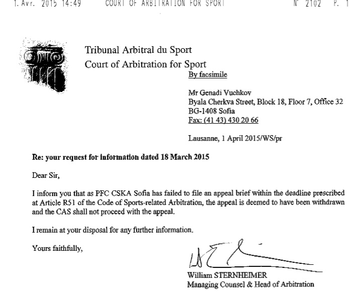 ЦСКА изпусна сроковете за обжалване по ключово дело в Лозана - ето какво казват от КАС (документ)