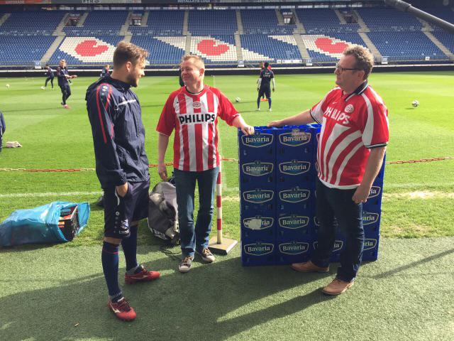 Именно затова двама привърженици на ПСВ се появиха на тренировката на Хееренвеен ден преди мача с 20 каси бира, предлагайки ги на футболистите на "сърцата".
