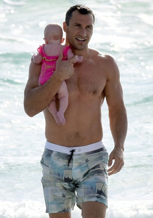 Кличко няма нищо против да се грижи за 4-месечната Кая, докато годеницата му - американската актриса Хейдън Пенетиър, има работни ангажименти в Ню Йорк. 39-годишният Влад показа своята по-мека страна в понеделник, докато се наслаждаваше на времето, прекарано с наследничката си на плажа в Маями.