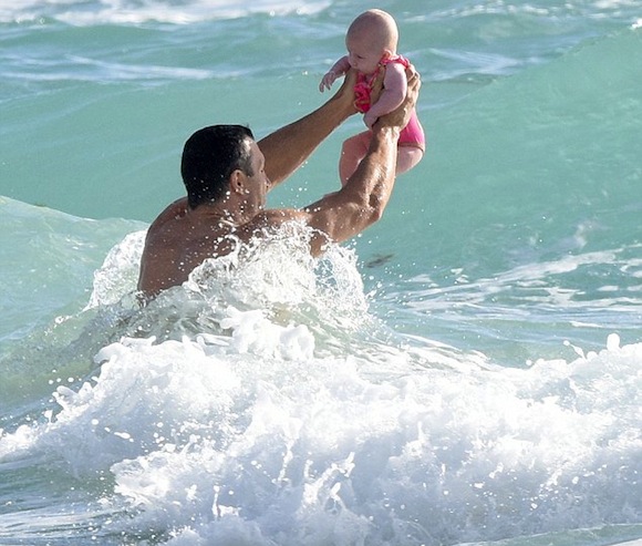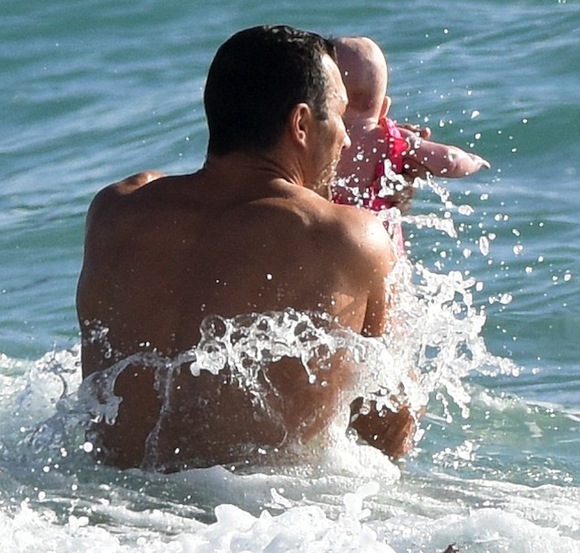 Кличко не се поколеба да потопи Кая Евдокия в океана, а на малката очевидно й харесва във водата, тъй като на нито една снимка не се вижда да плаче. Американските медии обаче захапаха боксьора, тъй като бебето е било без предпазна жилетка и без шапка против силното слънце.