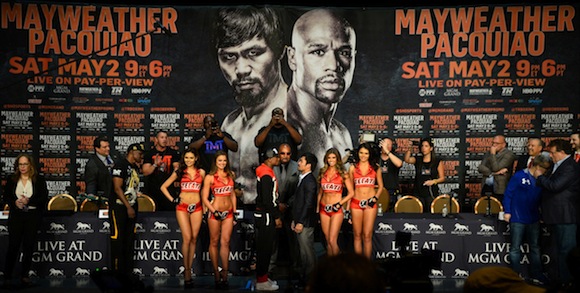 Четирите красавици са т. нар. ring girls или момичета на ринга. Освен че носеха табелите с номерата на рундовете, те пръскаха сексапил по време на паузите за наставления, събирайки не по-малко внимание от Мейуедър и Пакяо.