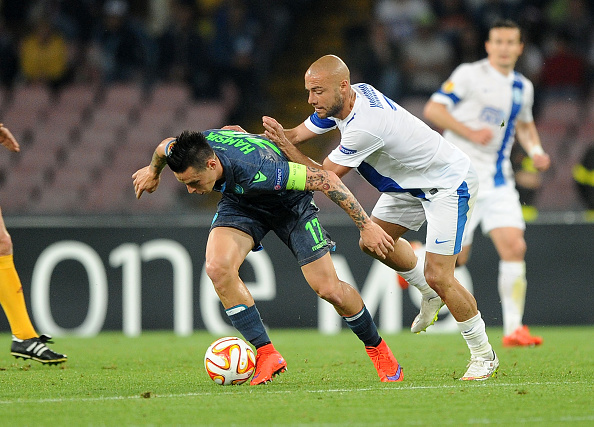 Отборите на Наполи и Днипро не успяха да излъчат победител в първия мач помежду си от 1/2-финала в Лига Европа. Срещата на "Сан Паоло" завърши при резултат 1:1, като така битката между двата тима ще се реши в реванша в Украйна. Гостите обаче извадиха голям късмет, тъй като изравнителното попадение на Селезньов в 80-ата минута бе от засада, която не бе забелязана от съдиите. Преди това Давид Лопес бе дал преднина на Наполи в 50-ата минута, а домакините направиха и още куп пропуски пред вратата на Денис Бойко, който също се отличи с няколко прекрасни спасявания.