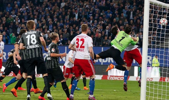 В истинска драма се превърна петъчният мач от Бундеслигата между Хамбургер ШФ и Фрайбург. Два от застрашените от изпадане тимове откриха 32-ия кръг с равенство 1:1, от което по-доволни могат да са домакините. Те издрапаха до така ценната точка с гол на Гойко Качар в последната минута и по този начин останаха над зоната на изпадащите. Фрайбург игра по-добре до почивката и поведе с попадение на Адмир Мехмеди, но в края на двубоя физическите сили напуснаха футболистите на старши треньора Кристиан Щрайх. Неговият тим е на 15-о място с 31 точки, колкото има и Падерборн, но новаците са с мач по-малко.