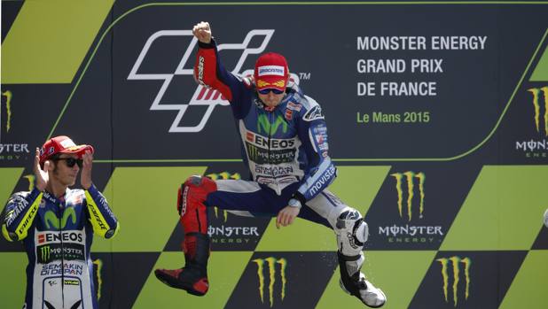 Звездата на Ямаха Хорхе Лоренсо спечели втора поредна победа в MotoGP. Испанецът бе най-бърз във Франция на "Льо Ман", след като стартира от трета позиция. 28-годишният испанец още на старта се възползва от грешка на Марк Маркес и до края на състезанието бе недостижим, като излезе на второ място във временното класиране с 87 точки. Успехът е негов 35-ти в кралския клас. Лидерът със 102 точки в първенството и негов съотборник в Ямаха Валентино Роси отново бе блестящ и завърши на второ място, въпреки че стартира от седма позиция. Ветеранът има две победи, едно второ място и две трети, като демонстрира, че е в страхотна форма и гони 10-та световна титла. Доктора стигна до второто място в 12-ата обиколка, но Лоренсо днес бе недостижим и италианецът дори не се доближи до него.