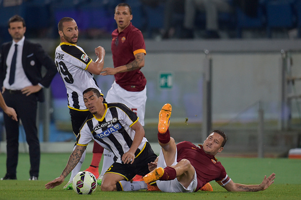 Домакините опитаха веднага да отговорят на предизвикателството и в 23-ата минута Виктор Ибарбо се отсъваше зад защитата и бе съборен пред наказателното поле, а Тоти от фаул отправи страхотен изстрел, но Орестис Карнезис спаси. В 34-ата минута обаче Удинезе организира бърза контра и Силван Видмер центрира отдясно за Перица, който от близо с глава направи невероятен пропуск. В 38-ата минута Рома отговори с центриране на Хосе Холевас за Виктор Ибарбо, който засече топката отблизо, но покрай вратата. Две минути по-късно колумбиецът имаше нов добър шанс, но отново ударът му бе спасен от Карнезис.