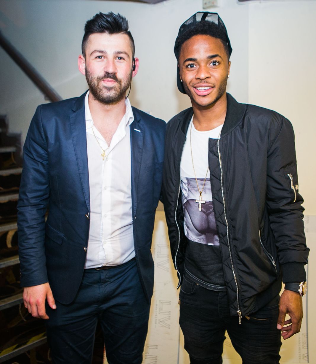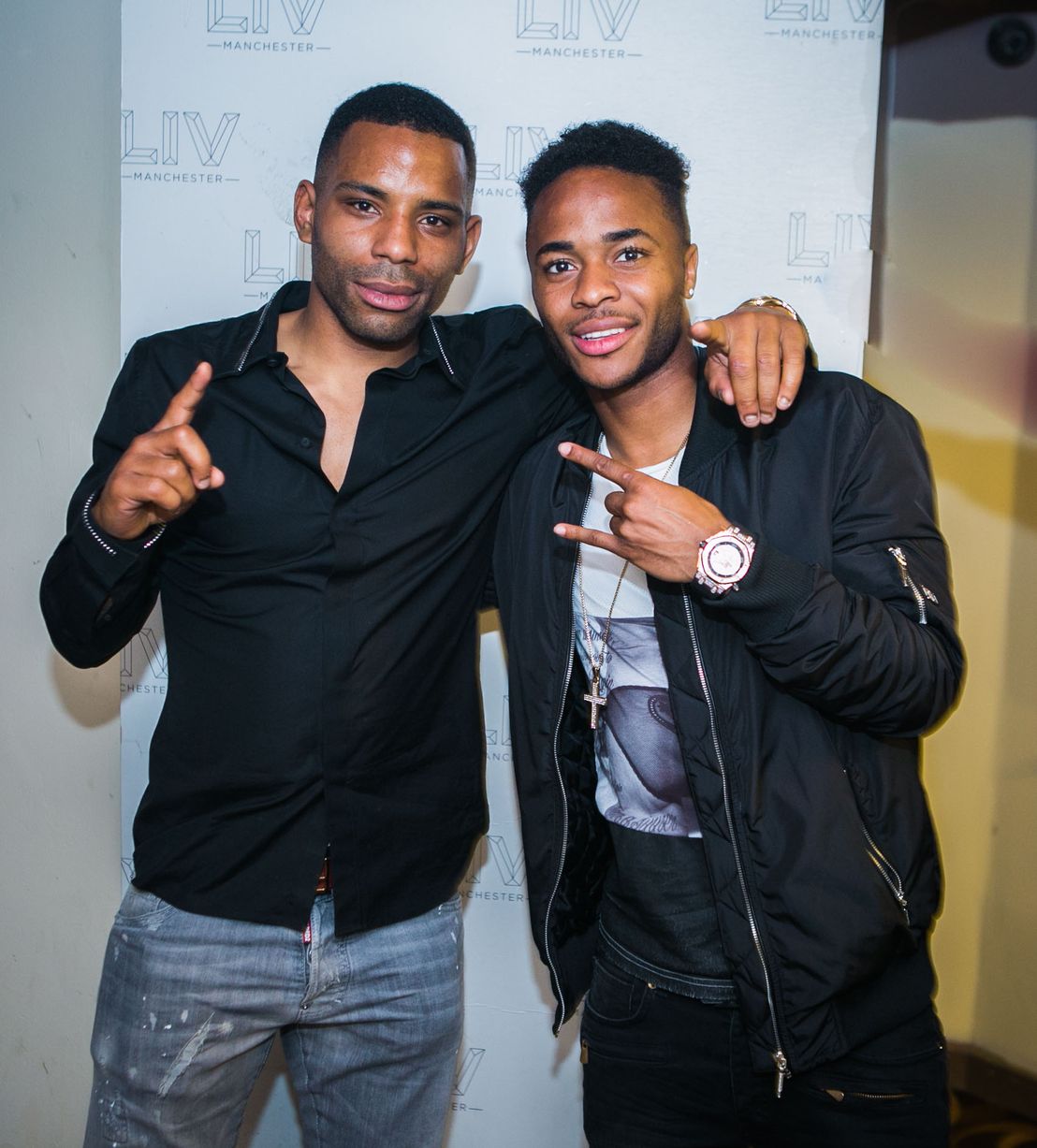 Стърлинг се щракна пред фоторепортерите в компанията на двама от героите на тима на Алън Пардю, вгорчили прощалния мач на Стивън Джерард с изявите си - Джейсън Пънчиън и Яник Боласие. Футболистите бяха сред ВИП-гостите на манчестърския клуб "Лив".