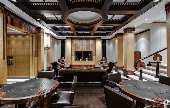 Каква е последната оферта? 14.885 млн. долара - близо 50% по-евтино от първоначалната цена. Имението разполага с 9 спални, 15 бани, тенис корт, баскетболно игрище, фитнес, басейн, салон за покер и пушене на пури, изба и др. екстри.