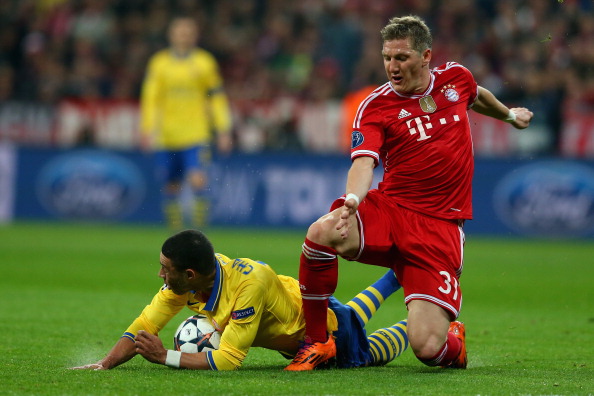 Минута по-късно Бастиан Швайнщайгер отправи и първия удар в очертанията на вратата, но Фабиански се справи. Байерн се задържа трайно в половината на Арсенал в първине минути, като гостите рядко минаваха центъра.