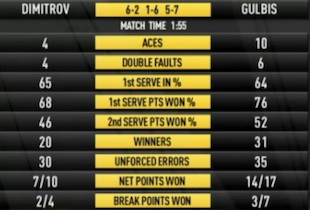 Първият сет беше своеобразен монолог за Григор, който демонстрира най-доброто от своя арсенал, стигна до два пробива и загуби само пет точки в своите разигравания.