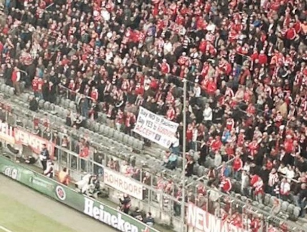 Много е вероятно баварците да си имат проблеми и заради транспаранта с лика на Йозил. Ще се търси отговорност защо въпросните плакати са били допуснати да бъдат внесени на стадиона.