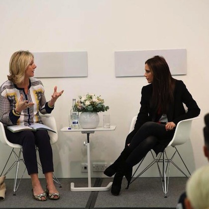 След посещението в колежа Виктория сподели впечатленията си в "Туитър". "Вдъхновяващ следобед със студентите от колежа Conde Nast! Благодаря ти, Сузи Форбс", написа тя.