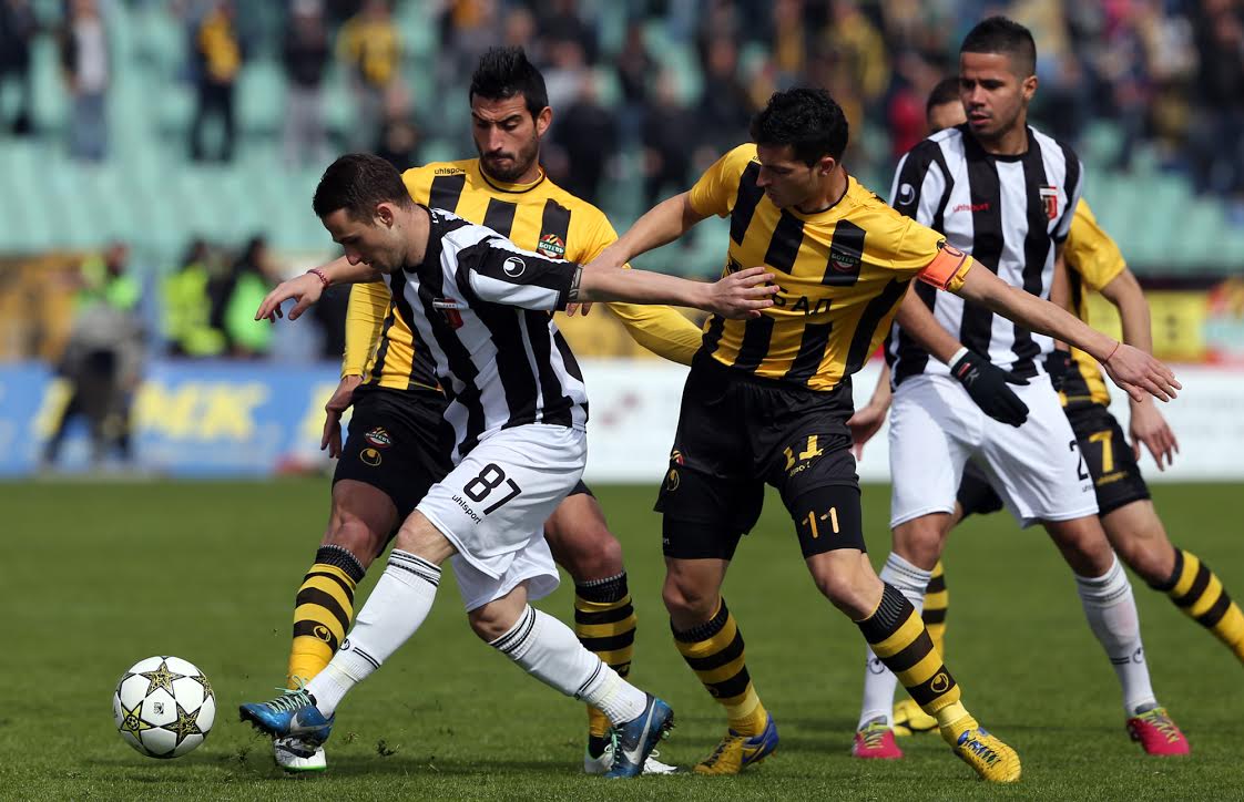 Шест минути по-късно "смърфовете" създадоха първо интересно положение пред противниковата врата. Камбуров стреля от наказателното поле, топката срещна ръката на Йордан Христов и "черно-белите" поискаха дузпа. Реферът Николай Йорданов прецени, че изстрелът е бил от малко разстояние и даде сигнал играта да продължи. Малко преди края на първата част Камбуров получи нов шанс, но защитник в жълто-черно застана на пътя на кълбото.