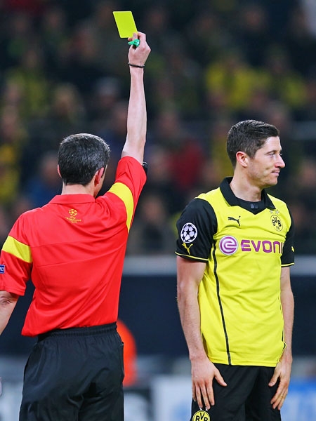 В 15-ата минута Зенит стигна по попадение. Бразилският нападател Хълк се измъкна опеката на Себастиян Кел, напредна към наказателното поле и с топовен удар с левия крак откри. Този гол значително вдигна нивото на напрежение в мача, а от това пострада нападателят на Борусия Роберт Левандовски, който получи жълт картон за умишлена игра с ръка в наказателното поле на Зенит и ще пропусне следващия мач на тима си в европейските клубни турнири.