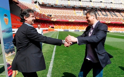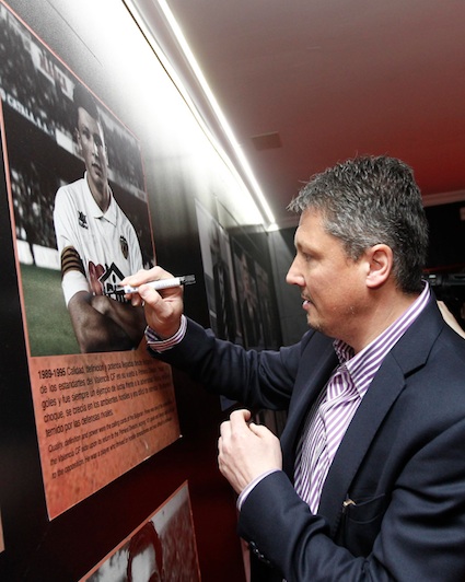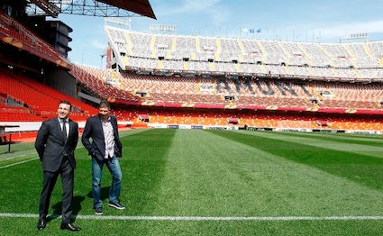 Две легенди на Валенсия се срещнаха днес на терена на стадион "Местайя". Бившият голаджия на "прилепите" Любослав Пенев и настоящият международен посланик на "бяло-черните" Марио Кемпес си стиснаха ръцете тази сутрин.