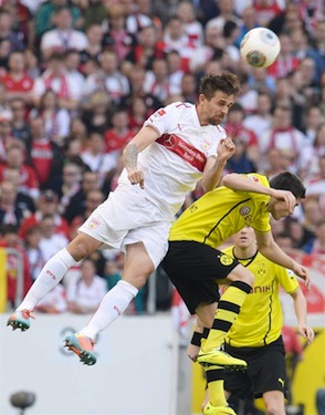 Отборът на Борусия (Дортмунд) победи с 3:2 като гост Щутгарт, въпреки че губеше с 0:2 в резултата. И трите гола за "жълто-черните" отбеляза Марко Ройс (30, 68-дузпа, 83), а за "швабите" точни бяха капитанът Кристиан Гентнер (9) и Мартин Харник (19). Георг Нийдермайер от Щутгарт получи червен картон в 68-ата минута. Двубоят бе от 28-ия кръг на германската Първа Бундеслига.