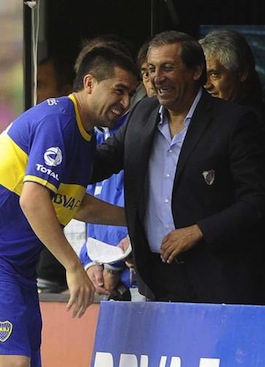 Преди първия съдийски сигнал Рикелме се прегърна с наставника на Ривър Рамон Диас. Бившият аржентински национал беше решен на всичко, за да изведе Бока до победата в последното си дерби, но това не стана.