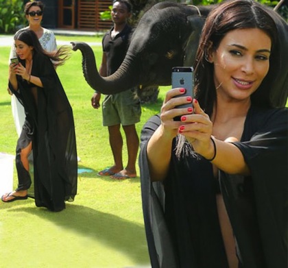 Слон нападна Ким Кардашян по време на снимки, а риалити звездата едва успя да се спаси с бягство. Кралицата на селфитата реши да се щракне пред малко слонче в Тайланд, но едва не стана жертва на любопитството му. Привидно кроткото животно стоеше абсолютно неподвижно, докато Ким си правеше селфи за феновете в мрежата. В един момент обаче на "дребосъка" му омръзна да позира за снимки и реши само да опита как се снима. В резултат на това бившата съпруга на баскетболиста от НБА Крис Хъмфрис хукна да се спасява с бягство, докато любопитното животно я преследваше.