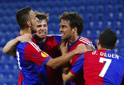 Базел шокира като домакин Валенсия в първата 1/4-финална среща между двата тима в турнира Лига Европа. Швейцарците победиха испанския си съперник с 3:0, въпреки че резултатът спокойно можеше да бъде и по-изгоден за "прилепите", ако те бяха реализирали някое от головите си положения през второто полувреме. Попаденията за Базел реализираха Матиас Делгадо (35, 38) и Валентин Щокер (90).
